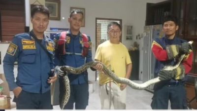 Ular Sanca 3 Meter Muncul di Belakang Kompor Warga Bogor, Hiii! Seekor ular Sanca berukuran…